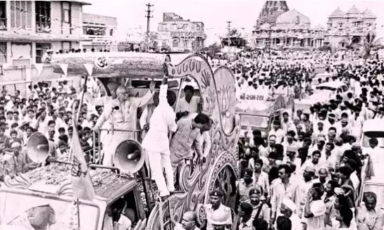 इसके बाद 1950 में हिंदू महासभा के वकील को गोपाल सिंह विशारद ने फैजाबाद जिला अदालत में याचिका दायर कर रामलला की मूर्ति की पूजा का अधिकार देने की मांग की। इसके बाद अगले 35 वर्षों तक हिंदू पक्ष और सुन्नी वक्फ बोर्ड अपने-अपने तरीके से उस जगह को अपने हवाले करने का दवा अदालत में करते रहें, मगर कुछ होता नहीं है। फिर 1980 में बीजेपी के सत्ता में आने के बाद राम मंदिर आंदोलन को लेकर चीज बदलने लगती है। यह वह वक्त था जब संघ, विश्व हिंदू परिषद और बीजेपी सभी अपने-अपने तरीके से राम मंदिर आंदोलन को तेज करने में लग जाते हैं। 1984 में दिल्ली के विज्ञान भवन में एक प्रोग्राम करके यह लोग राम मंदिर के लिए सीतामढ़ी से अयोध्या तक रथ यात्रा निकालने का भी कार्यक्रम बनाते हैं, लेकिन 1984 में इंदिरा गांधी की हत्या के बाद यह कार्यक्रम टाल देते हैं।